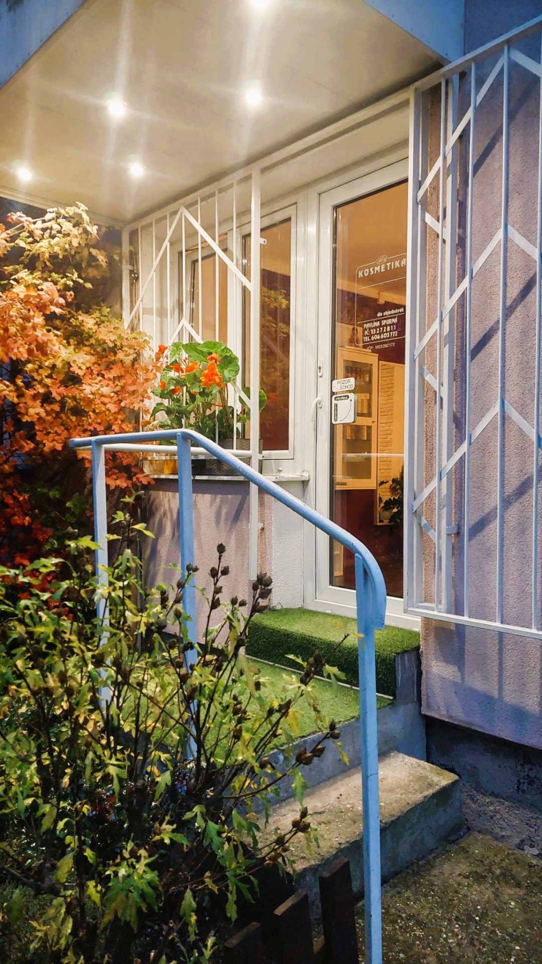 Salon má zvláštní vchod z druhé strany ulice Na Skalách 916.